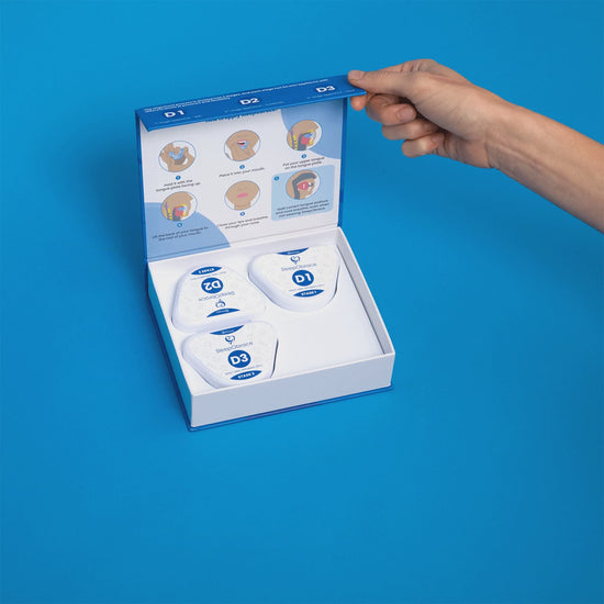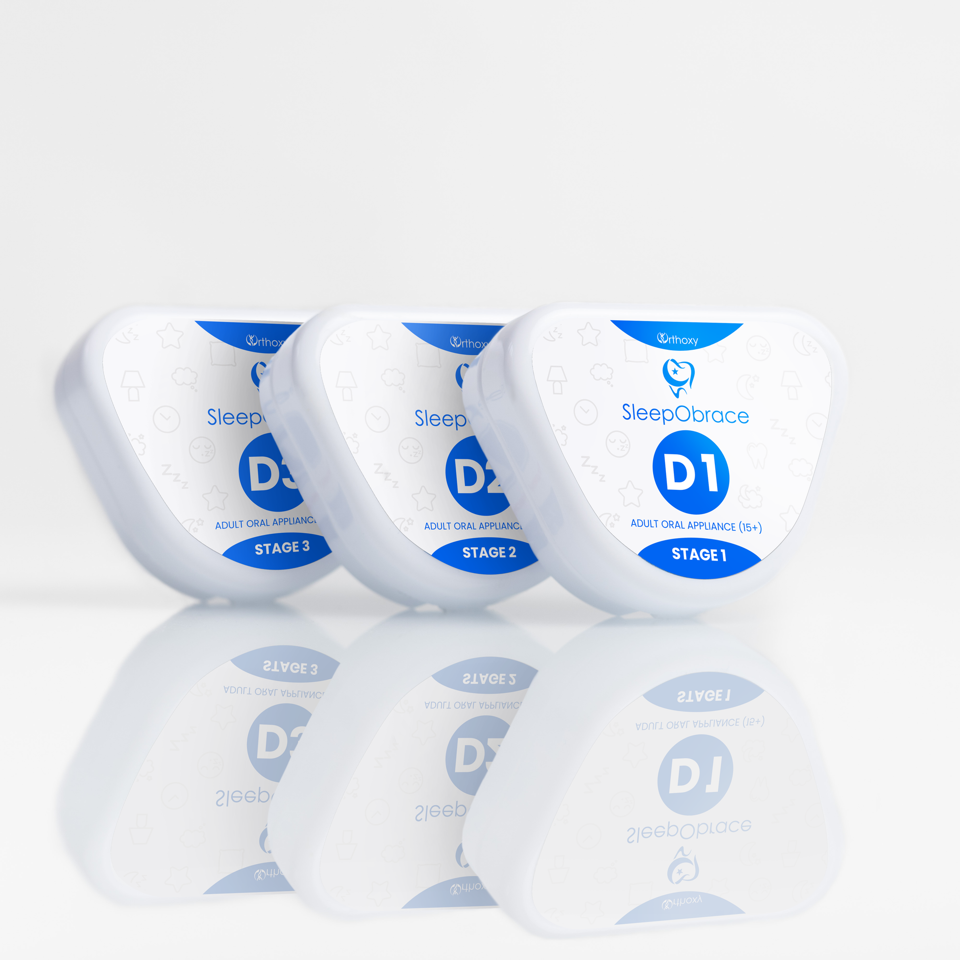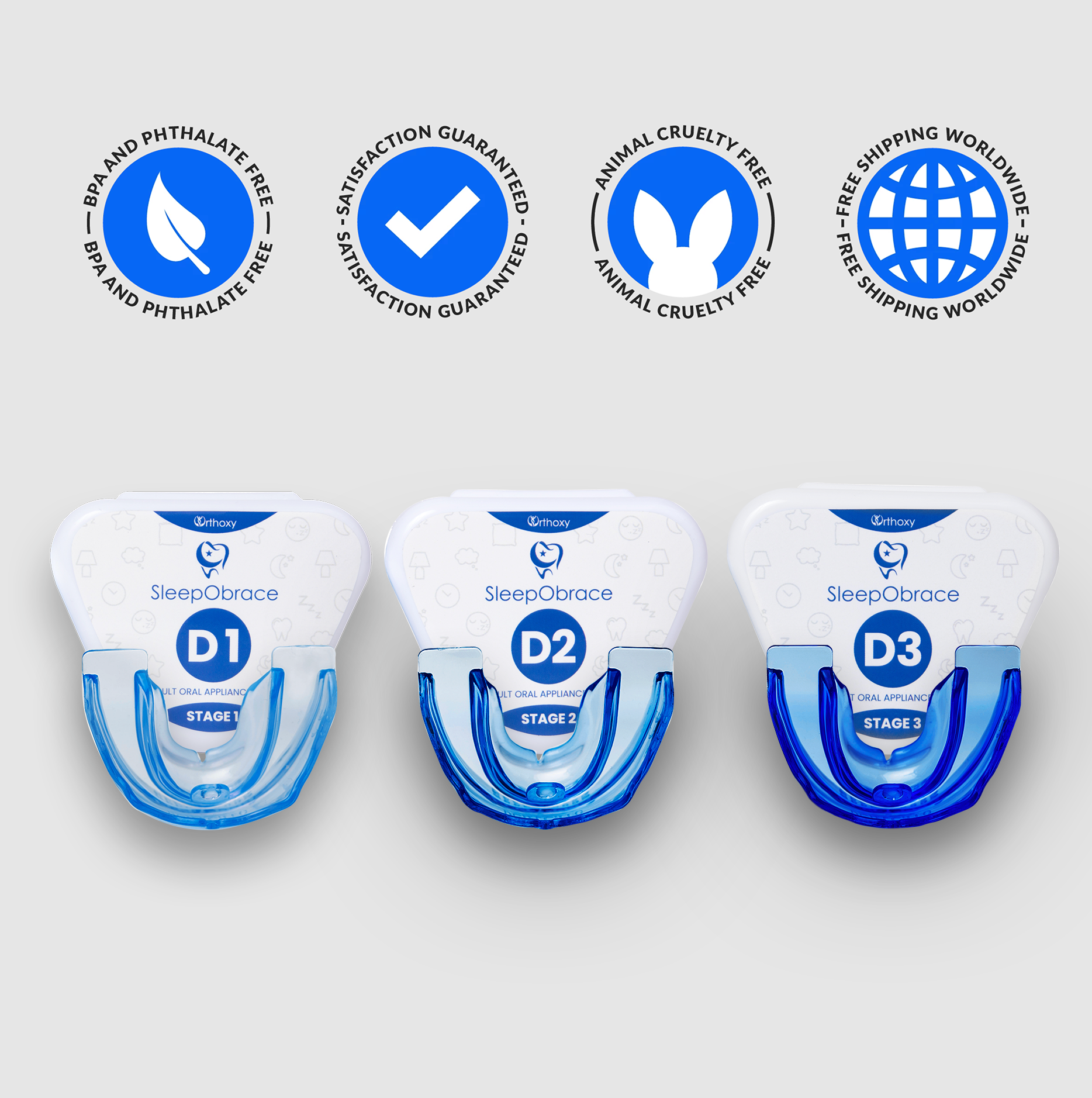 SleepObrace™ is made out of non-toxic and flexible materials. It creates strong and evenly spread-out pressure throughout the jaw. This pressure results in a defined jawline, closed gaps, aligned teeth, better facial aesthetics, and improved dental arch. The used material has the characteristic to fit most jaws with no abnormal teeth displacements.