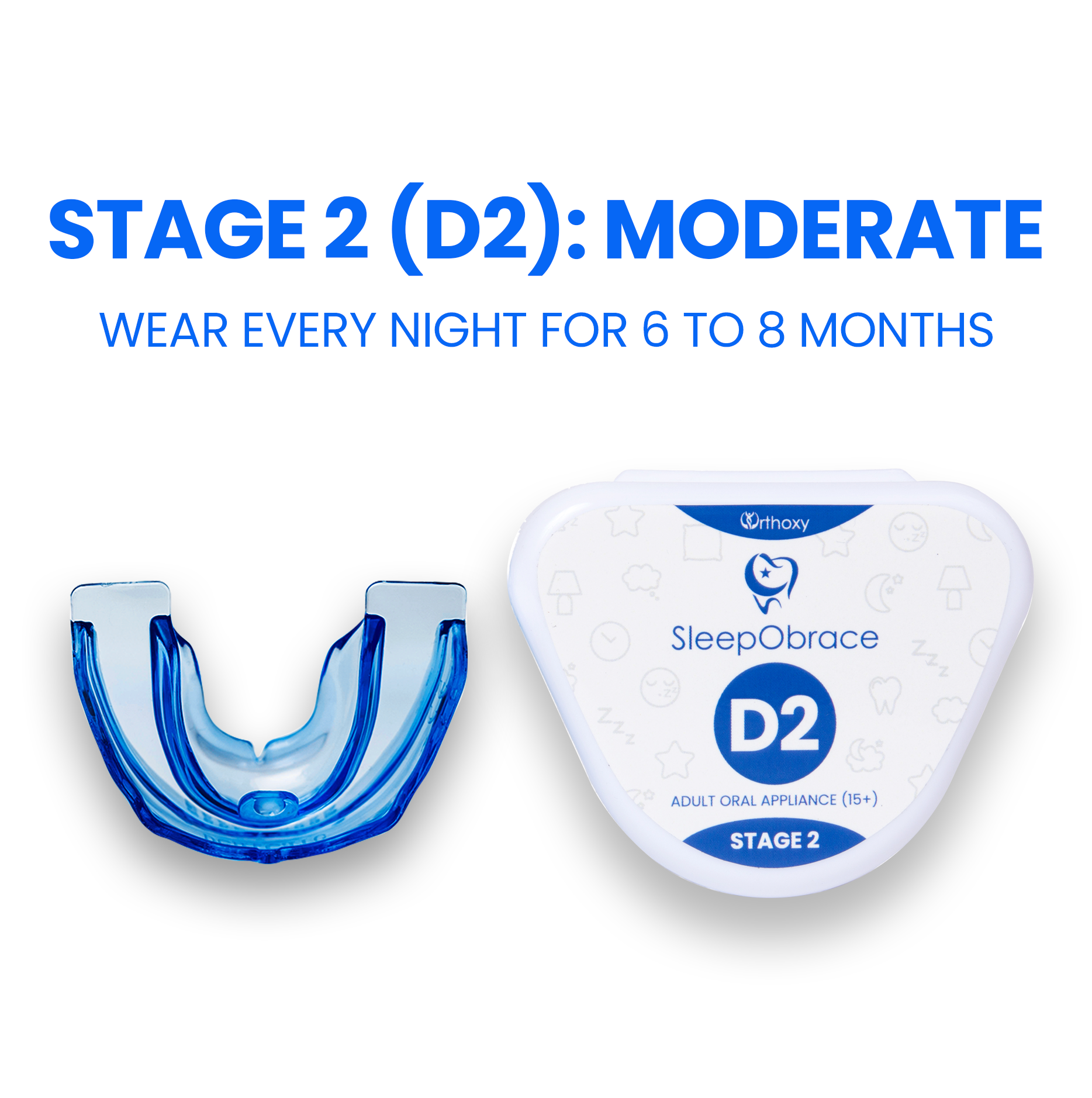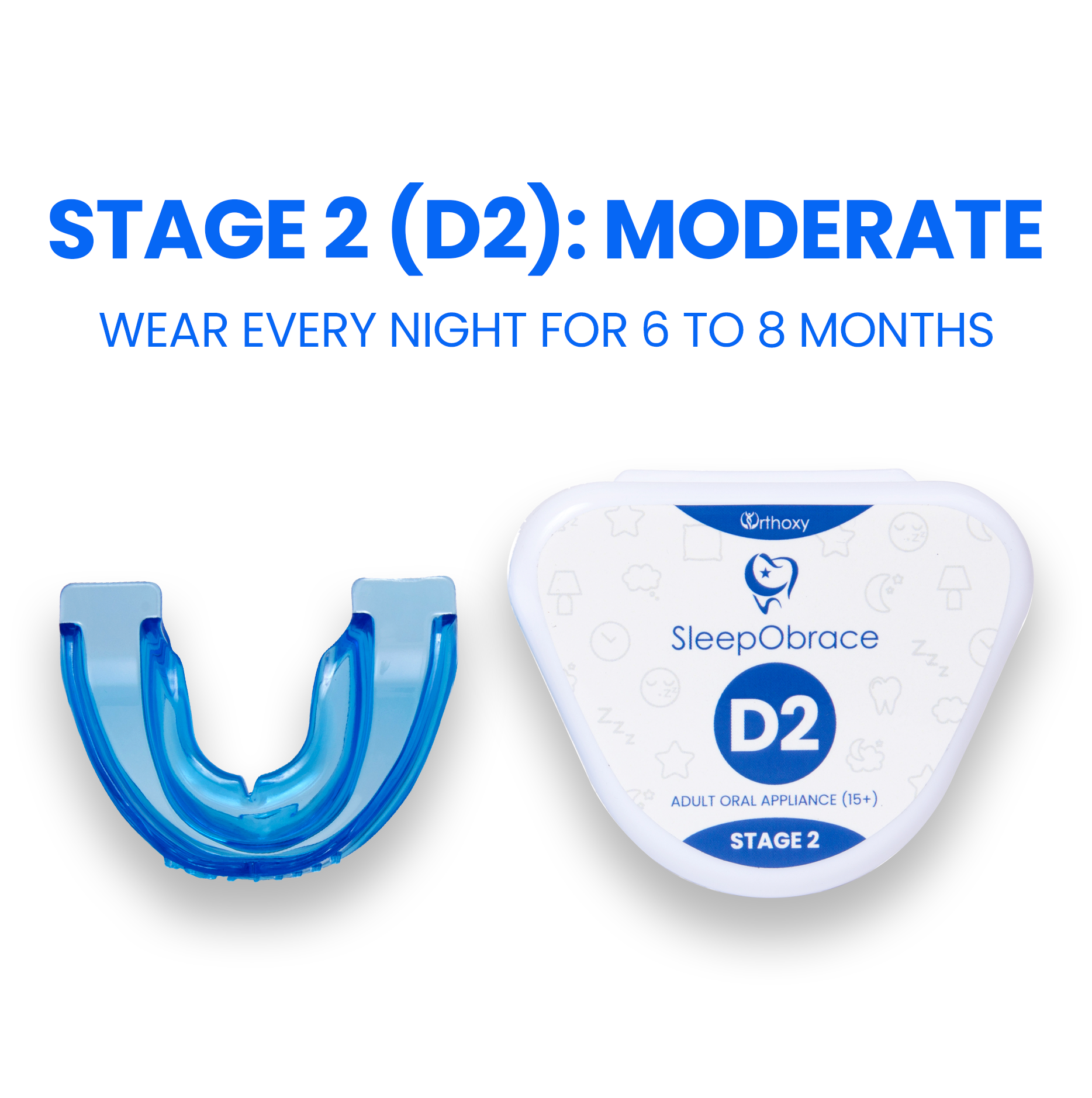 D2 (Stage 2) is moderate. Wear it every night for 6 to 8 months straight.